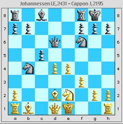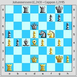 Après vacances et championnats, reprise des entrainements. Comme convenu, on a commencé l'analyse des parties de John jouées au cours du tournoi de Cappelle la Grande 2000. Aujourd'hui, c'est le match opposant le MI Johannessen (2431) à John lors de la 6°ronde.