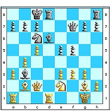 12)dxc3 Fd6 ( à noter que l'échange des dames était ici favorable aux noirs) 13)c4 Fg4? 14)f3 Fe6 un temps perdu..15)Dc2 f5! 16)Tfd1 De7 17)b4 Df7 (De6 gagnait un temps) 18)c5 Fb3!