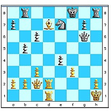 expose sur la colonne c.}) 10. Bxc6+ 10... Qd7 {Il n'y a plus d'autre possibilite ! C'est le peu de cases de fuite pour le roi noir qui rend cette combinaison possible.} 11. Bxd7+ Kxd7 12. Rxd1 {Les Blancs ont recupere la dame et le fou. Ils ont deux pions d'avance.})