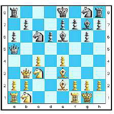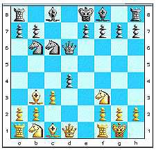 16... Ne7 17. Nxh6 {Le jeu d'echecs est ingrat : les Blancs combinent bien, mais ne se rendent pas compte des effets secondaires de leur combinaison. Certes, ils gagnent un pion, mais ils OUVRENT LA COLONNE h sur leur roi et se condamnent.} (17. Qe2 "position ÈquiulibrÈe") 17... Qh7 18. Ng4 18... Bb4 {Les Noirs attaquent tous azimuts, mais Bxg4 directement etait ok puisque les Blancs sont menaces de mat et ne peuvent donc pas reprendre.} 19. c3